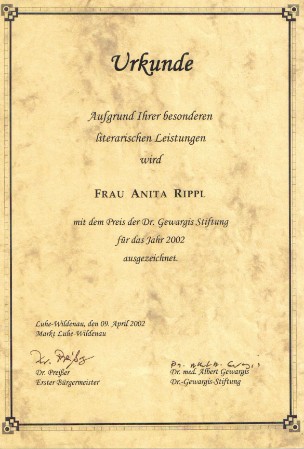 Autorenportrait Name: | Anita Rippl | Geburtsdatum: | 08. Mai 1976 | Geburtsort: | Weiden i. d. Oberpfalz | Wohnhaft: | Luhe-Wildenau | Homepage: | www.anitarippl.de | e-mail: | anita.rippl@t-online.de | | | Hobbies. | Schreiben, Reisen, Freunde treffen, Musik, Kino, Tiere | | | Bereiste Länder: | Griechenland, Irland, Österreich, Tschechien, Spanien, Portugal, Großbritannien, USA, Schweden, Sizilien, Island, Frankreich | Geplante Reisen: | Norwegen, Finnland | | | Werdegang: | 1984 Erste, kleine Erzählungen wie Märchen und Kurzgeschichten 1990 Inspiration durch damalige Literatur wie Mädchenbücher á la „Hanni & Nanni“, Dolly 1992 Danach folgten Romane im Trivialbereich wie Horror sowie Krimis 1996 Entstehung erster Jugendromane | | | Der Weg zum Schreiben: | Mein Motto: Wer gerne liest, findet auch bald den Weg zum Schreiben. Sei es durch Führen eines Tagebuchs oder Brieffreundschaften, schreiben von Gedichten etc. | | | Veröffentlichungen: | 1999 „Und plötzlich bist du allein“ 2002 „Cousinen und andere Katastrophen“ 2007 „Claudia & Christoph“ 2014 "Mehr als ein Leben" | | | Gedanken zum dritten Roman: | Geschichte über Heranwachsende sind faszinierend. Sie bieten so viele Möglichkeiten und sollten daher bewusst geschrieben werden, um es den jugendlichen Lesern leicht zu machen, sich mit den in den Geschichten handelnden Personen zu identifizieren. „Claudia & Christoph“ Im Mittelpunkt der Geschichte steht das sechzehnjährige Mädchen Claudia, das der Meinung ist, Gefühle zu zeigen, sei ein Zeichen von Schwäche. Als ihre Eltern sich scheiden ließen, schaltete sie ihre Gefühle aus, die alles nur noch komplizierter zu machen schienen. Sie ist hart gegenüber sich selbst und oft auch ihren Mitmenschen, bis sie erkennt, dass es mehr gibt, als nur Schwarz und Weiß. Ein Roman über die kleinen und großen Nöten einer ganz normalen Jugendliche wie es viele gibt. Junge Menschen, die sich durchs Leben kämpfen, verlieren, aber immer auch dabei gewinnen. | | | Auszeichnungen: | 2002 Urkunde der Dr. Gewargis-Stiftung für besondere literarische Leistungen | | | Lesungen: | Weiden i. d. Opf. - Gustl-Lang-Schule (ehemals Staatliche Wirtschaftsschule) - Berufsschule Pirk - Josef-Faltenbacher-Schule Luhe - Volksschule Nabburg - Johann-Andreas-Schmeller-Gymnasium Rohr in Niederbayern - Volksschule Neustadt a. d. Waldnaab - Hauptschule - Stadtbücherei Altenstadt a. d. Waldnaab - Hauptschule | | | Presseberichte: | - Der neue Tag - Oberpfälzer Wochenzeitung - Rundschau - Stadt- und Land-Express - Oberpfälzer Nachrichten - Norbayerischer Kurier - Landshuter Zeitung - Mitteilungsblatt der Gemeinde Rohr in Niederbayern | | | Sonderbeilage: | „Das Leben ist die Inspiration“ - Besondere Menschen aus der Region (erschienen in „Der neue Tag“) | | | Auftritte Rundfunk: | 2000 und 2002 Lokalradio Weiden i. d. Opf. „Ramasuri“ Sonntagssendung: „Muntermacher“ Dauer jeweils 60 Minuten | | | Wünsche/Träume: | - viele Leser - neue Lesungen, Begegnungen - ein weiterer Roman ? |